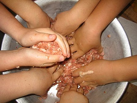 灌好後.再分節成適合粗細大小..免的香腸灌好後脹破